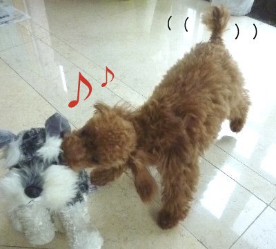 おもちゃ市場に出かけてシュナイザー君を見つけてきました。