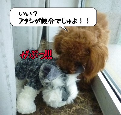 早速 どこに行くにもシュナ君をくわえて私の後をついてきます。