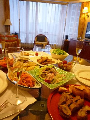 美味しい料理とpekotanのバゲット、チーズにワイン4本、シャンパン1本、