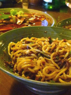 辛い物好きな友人とローカルな四川料理屋で最後の〆に頼んだ「干橇面」。