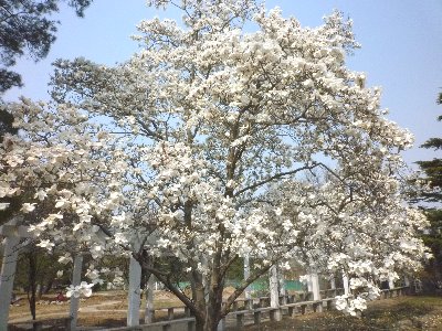 ちょうどモクレン(玉蘭花)と桃の花(桃花)が満開で
