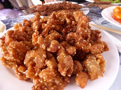 料理は、后海の水辺にある老舗レストラン「烤肉季」で注文をして、