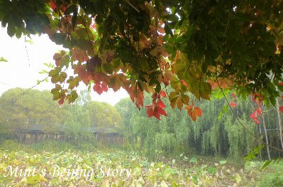 色あせて見える北京の紅葉。