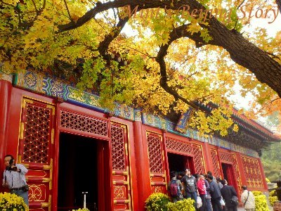 東門をはいると、ごらんの様に黄色く色付いた楓が出迎えてくれて