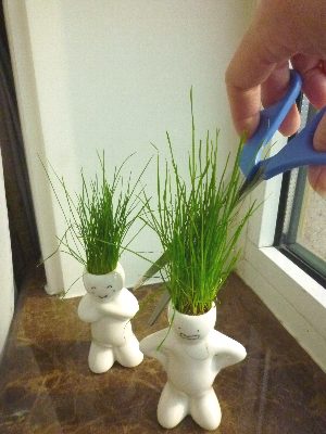 頭の部分にネットに覆われた土と種が入っていて