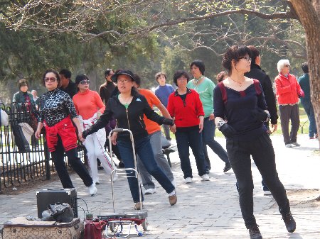 北京は、まず人の多さに驚いて、その人たちが元気いっぱいに体操をしたり