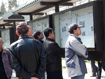 こちらは、朝刊を読むおじさんたち。