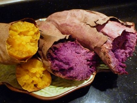 やっぱり普通の黄金色のサツマイモのほうが甘くておいしい。