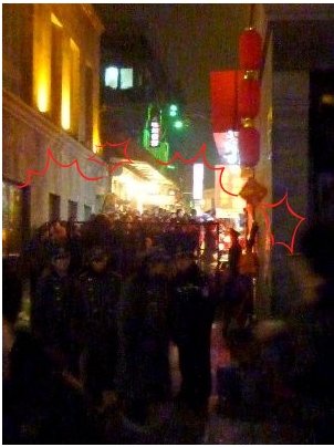 途中も公安がバリケードを作って 小道からメイン道へ行かないように見張ってるの!