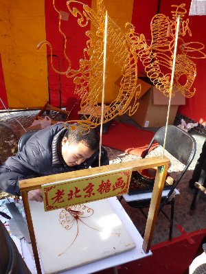 日本にべっこう飴と一緒で飴細工の屋台。