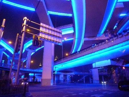 まるでアニメで見た近未来のような上海の高架道路。