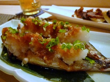 いわしの塩焼きに大根おろしをたっぷりのせて・・・。