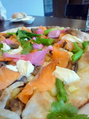 メニューに、サーモンと、山葵などを使ったpizzaを見つけて