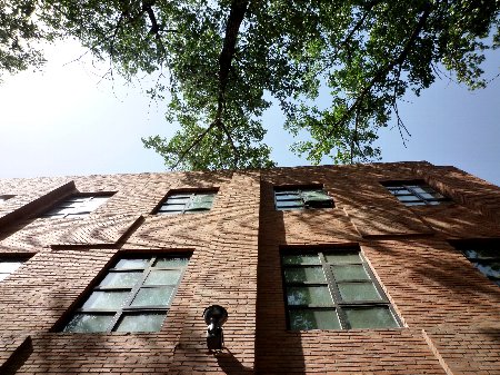 空を見上げれば高いビルに囲まれて空が小さ~い。